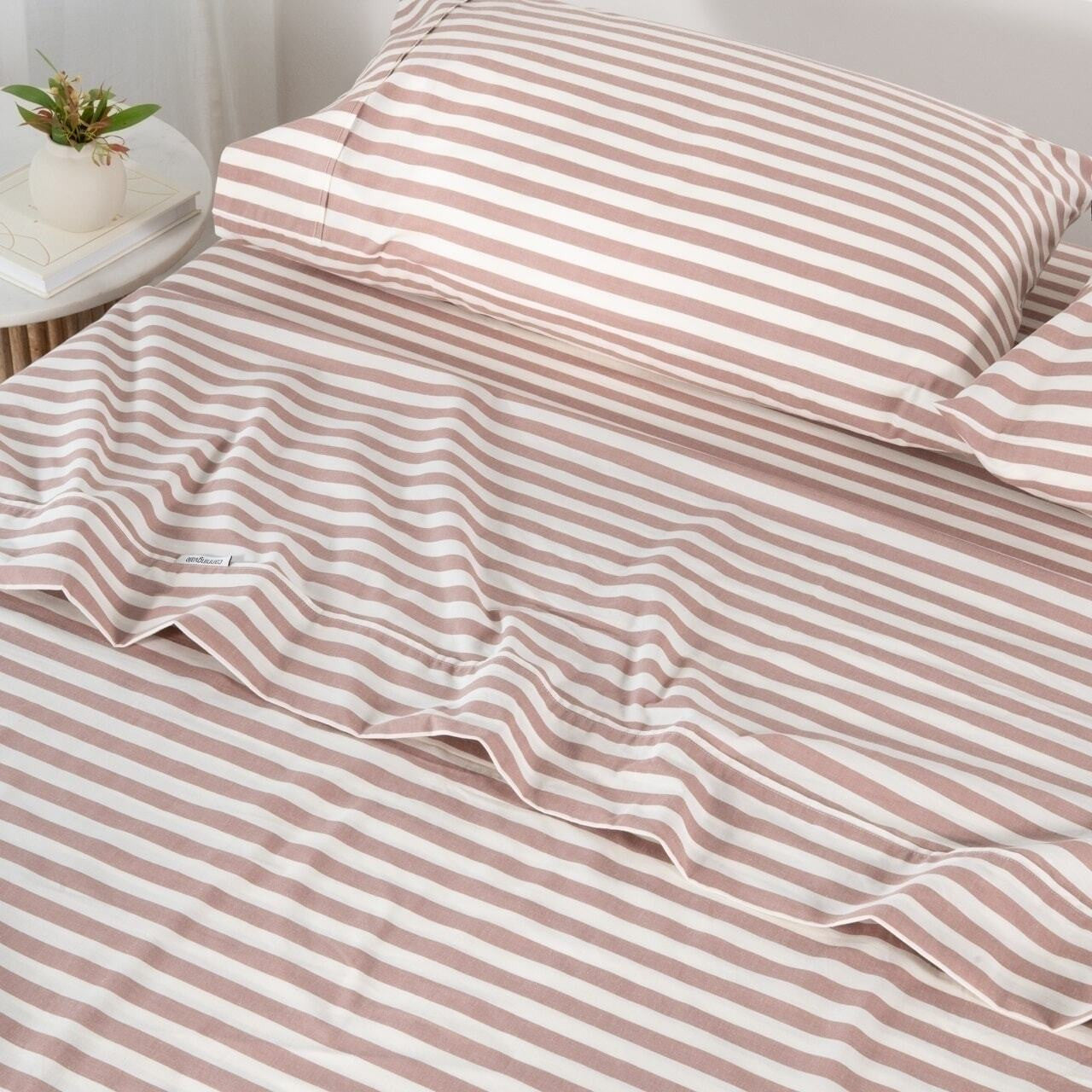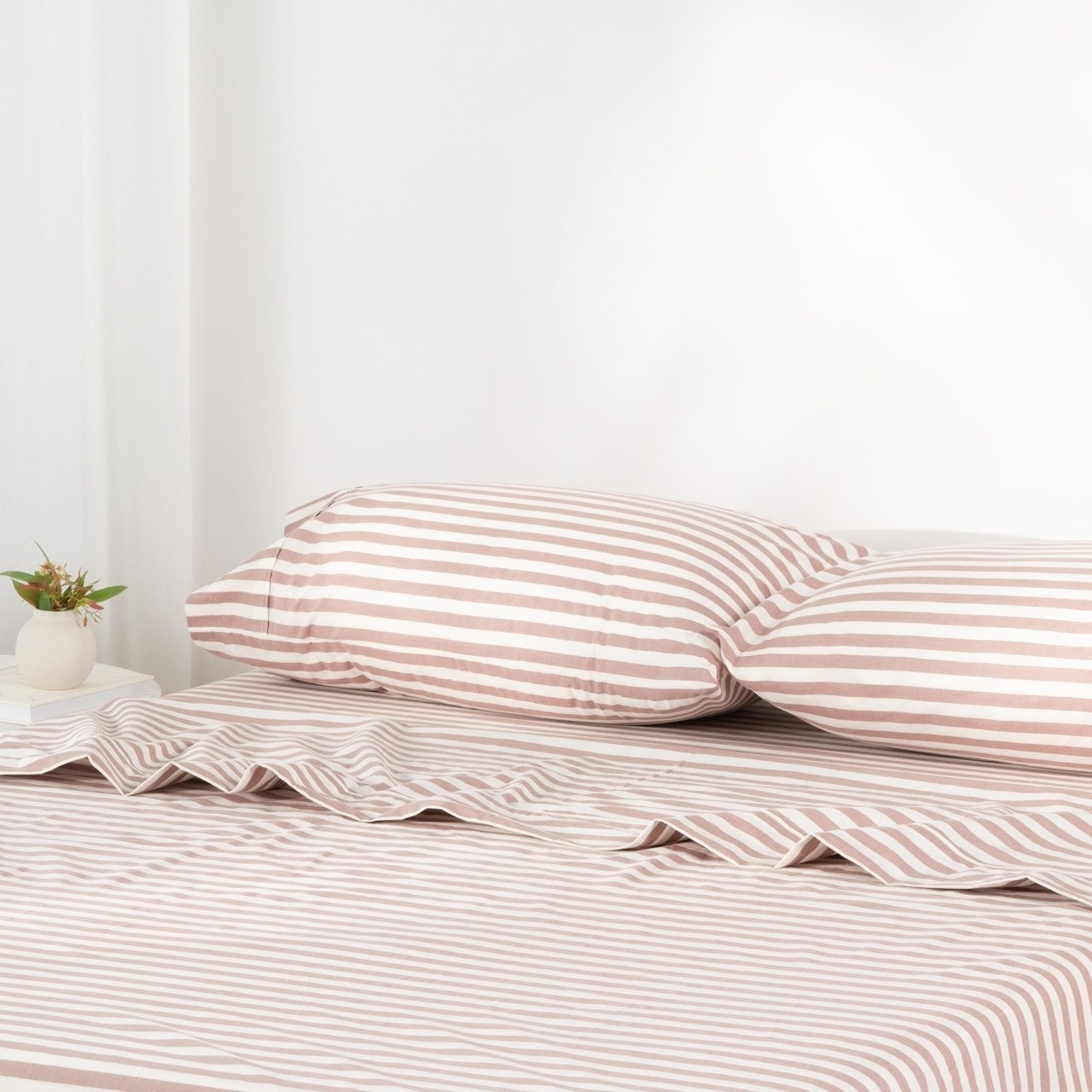 Canningvale Modella Stripe Sheet Set - Mocha - QB