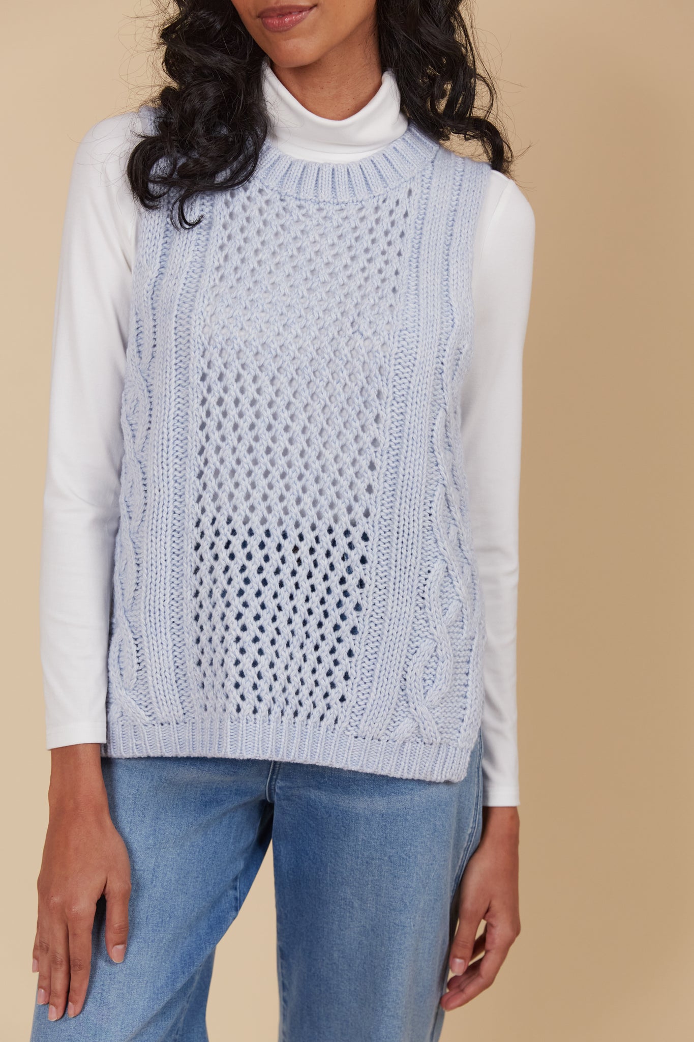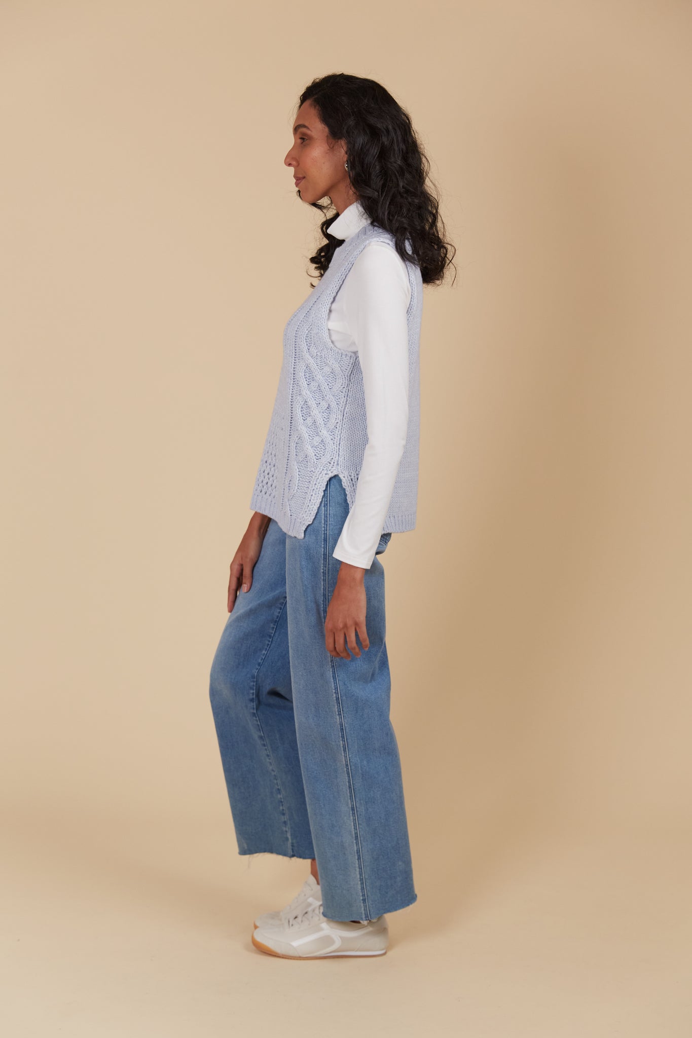 Cosy meets chic in the form of the Luna Knit Vest from Isle of Mine, your go-to piece for changing seasons. The distinctive weave of this vest adds a lovely texture to your outfit while providing an extra layer of warmth. It features a round neckline, slim rib detail and side vents. Pair it with a simple t-shirt, a skivvy, or a button-down shirt, along with leggings or jeans, for a sleek and easygoing look.