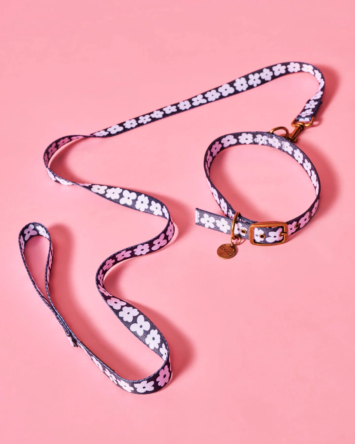 Get those tails wagging for walkies with our fun printed dog leads. Our Flower Face Dog Lead features bold white flowers on a black base. Available in two lengths, pair with our co-ordinating dog collars and match with our dog beds to spoil your pretty pooch.