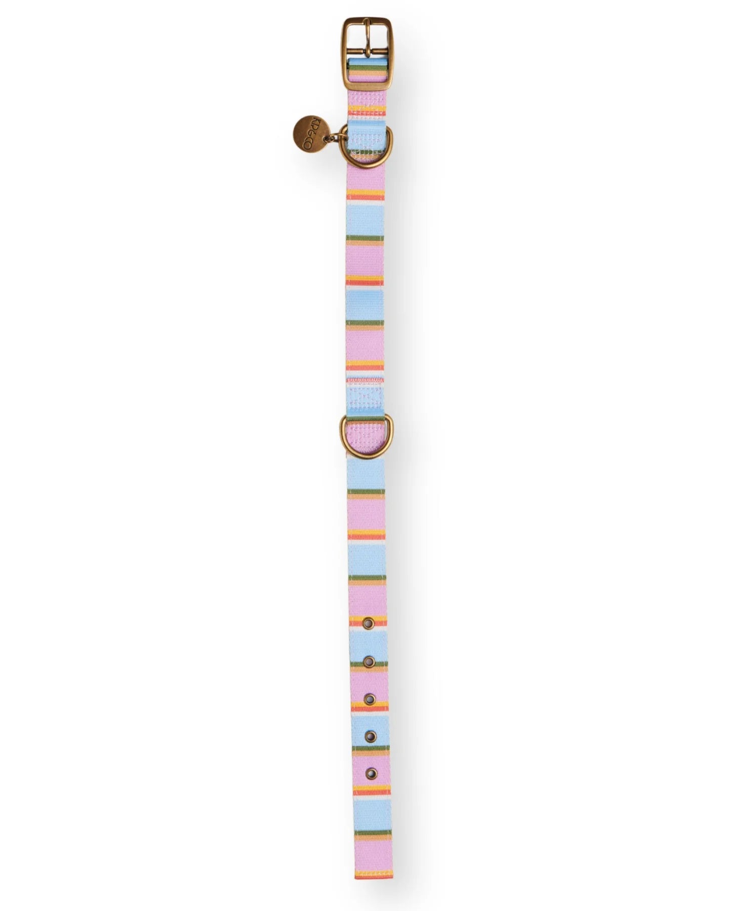 Polyester collar with brushed brass coloured hardware.