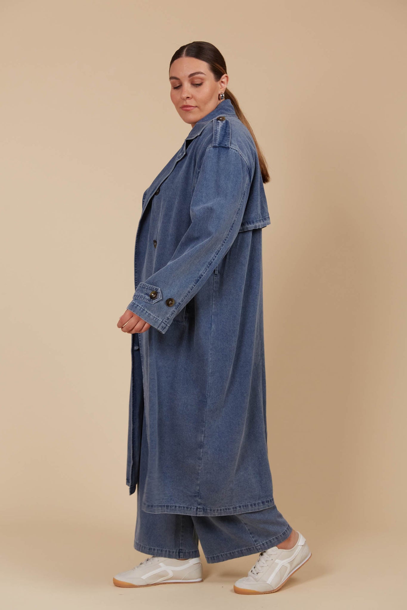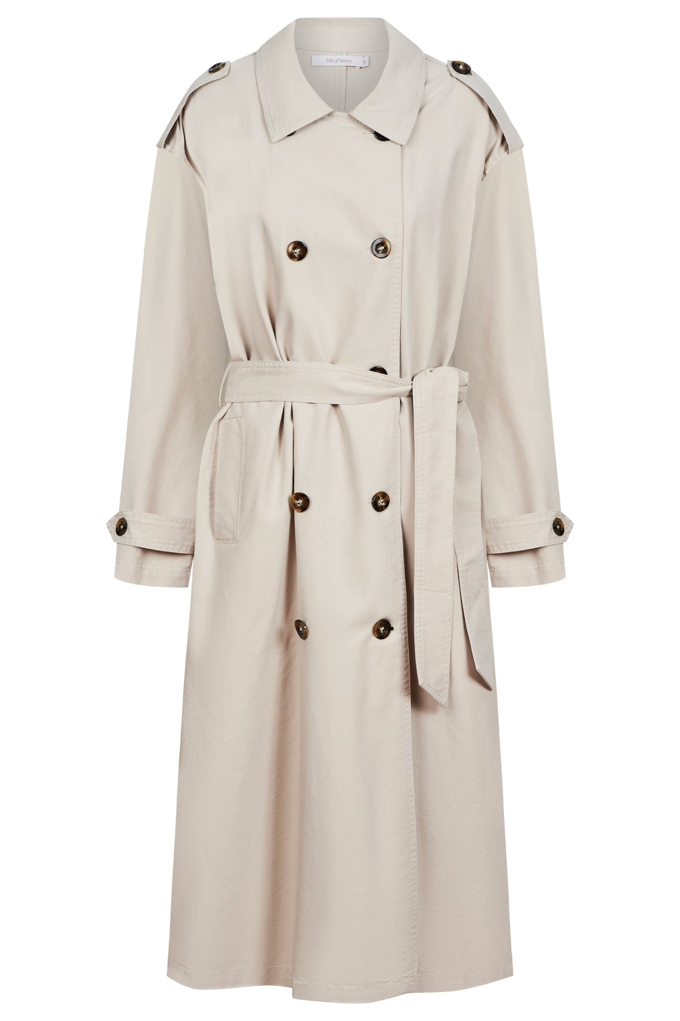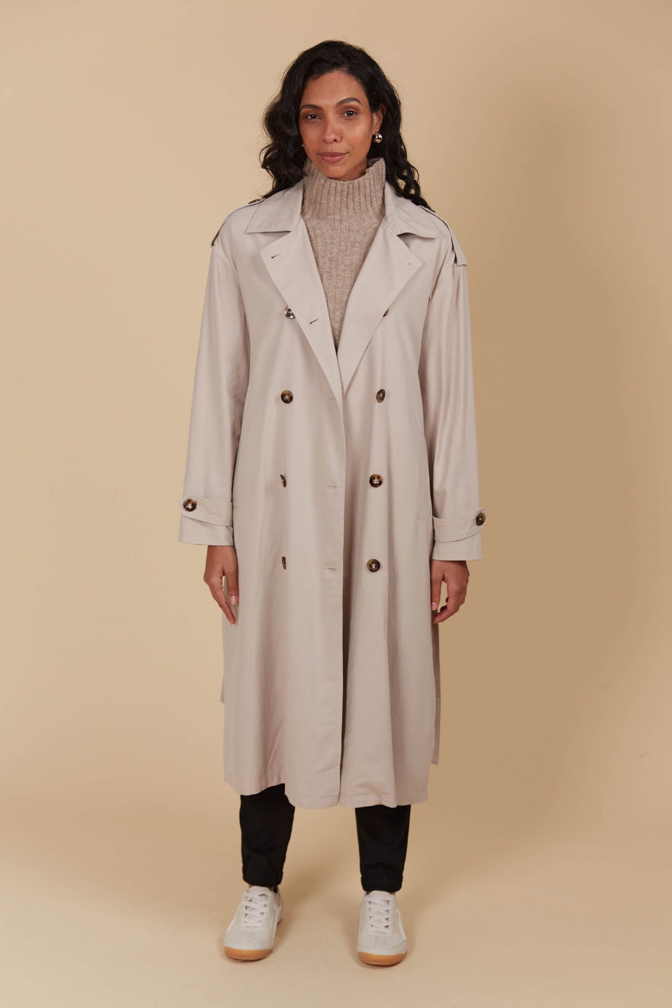 A classic trench coat is a forever piece in any wardrobe, and the Freya Trench Coat is no exception. Crafted from premium cotton, it combines chic style with lightweight durability, making it essential for the cooler months. The generously boxy fit is ideal for layering, while its functional details provide warmth and practicality. Whether worn over a sophisticated dress or a relaxed outfit, this coat ensures a poised and well-curated appearance.
