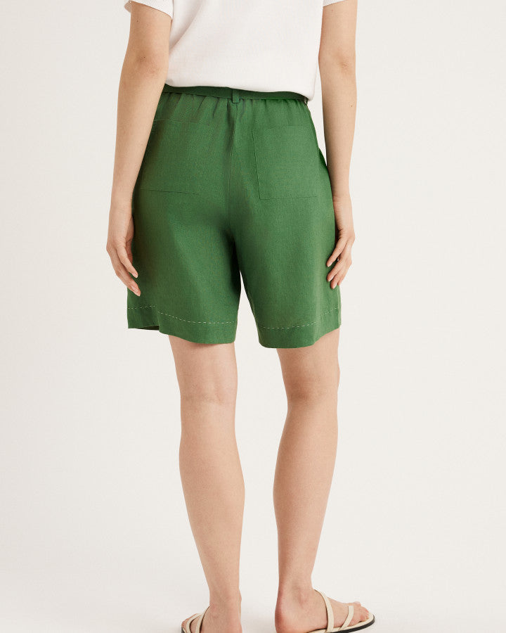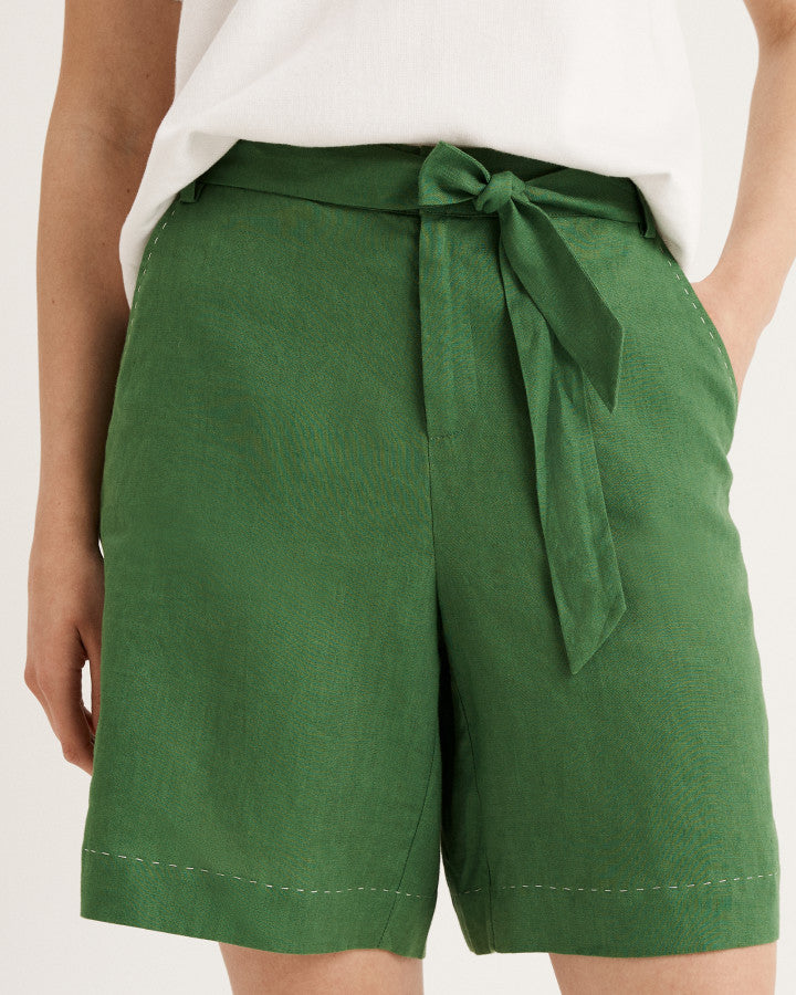 The Riviera Short offers an elegant take on casual summer dressing. Crafted from 100% linen, it combines natural breathability with a structured, refined finish. The straight fit and thigh-length cut create a clean, flattering silhouette, complemented by contrast running stitch detailing that highlights the craftsmanship of the design. A matching fabric belt with belt loops allows for adjustable styling, while functional side and back pockets bring everyday practicality. Finished with a traditional front fly and hook-and-bar closure, these shorts pair perfectly with linen shirts or relaxed knits for an effortlessly pulled-together summer look.