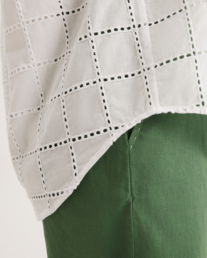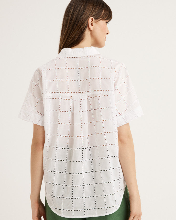 The Harmony Shirt brings fresh refinement to your summer wardrobe. Crafted from 100% cotton in an exclusive Broderie Anglaise fabric, it combines timeless texture with breathable comfort. The open collar and relaxed fit create an easy silhouette that moves effortlessly from casual days to elevated occasions, while Yarra Trail’s signature curved hem lends a flattering finish. A versatile staple that feels polished yet relaxed - perfectly capturing the essence of Yarra Trail style.